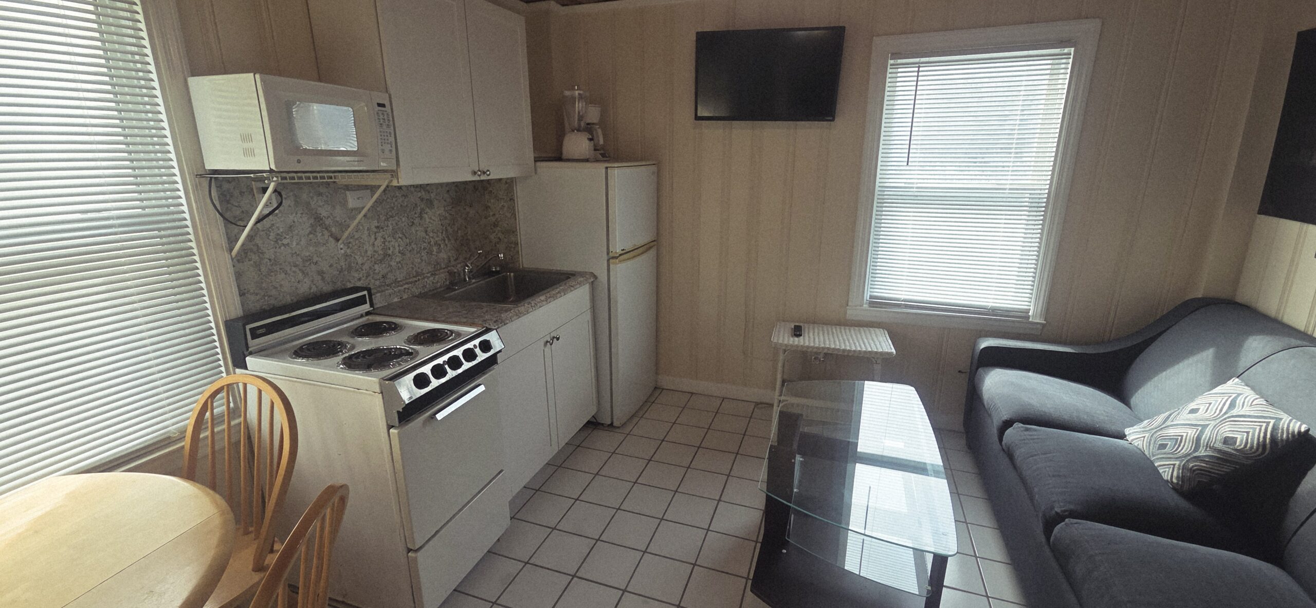 This modern, ocean-view house has 8 apartments available for 90 day leases. The front of the house has four efficencies and the 4units in back are one-bedroom units.